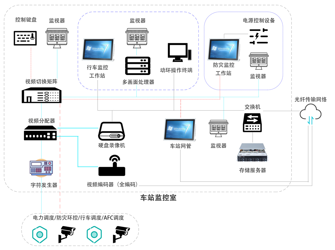 CCTV閉路電視監控系統由安防網絡子系統、安防集成管理子系統、綜合電視監控子系統、門禁子系統、車輛段/停車場和高架區間入侵探測子系統、以及車站緊急告警子系統等構成。實現對重點區域的出入管理、登記、實時視頻監控和入侵探測等功能。