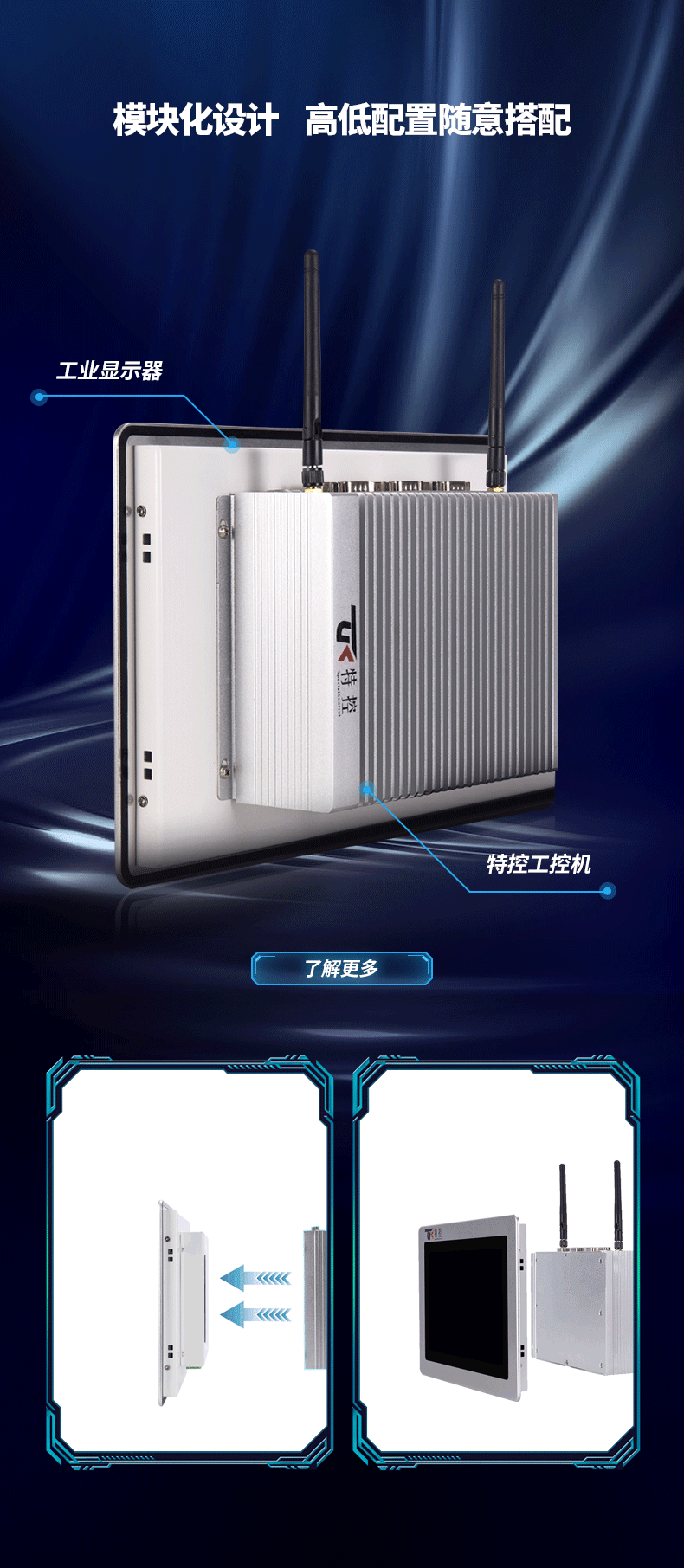 隨著工業4.0的到來以及市場需求的變化,快速上市和響應客戶需求已成為制造業亟待解決的關鍵問題。為了滿足以上市場需求,特控推出了模塊化工業平板電腦系列。工業平板電腦的模塊化設計,可根據使用需求,使計算機主機模塊和顯示屏模塊互換組合,提供全面而靈活的工業平板電腦解決方案。這種創新的模塊化設計可以實現快速定制和部署、有效降低維護成本,為未來的快速升級提供基礎擴展,控制經濟成本,提高設備使用效益。