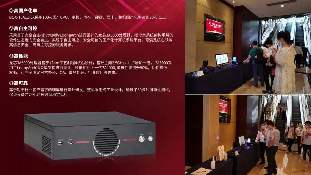 此次發(fā)布會上,研恒科技推出了基于龍芯新一代處理器龍芯3A5000設(shè)計(jì)研發(fā)的微型計(jì)算機(jī)BOX-T5A11-LX。龍芯3A5000采用完全自主指令集架構(gòu)LoongArch進(jìn)行設(shè)計(jì),所承載的軟件生態(tài)走向完全自主,性能相比上一代3A4000, 單核性能提升50%,功耗降低30%。BOX-T5A11-LX整機(jī)采用純工業(yè)設(shè)計(jì),通過了30多項(xiàng)可靠性測試,保證設(shè)備7*24小時(shí)長時(shí)間穩(wěn)定運(yùn)行。配套國產(chǎn)BIOS,加載國產(chǎn)操作系統(tǒng)和國產(chǎn)基礎(chǔ)應(yīng)用軟件,實(shí)現(xiàn)自主可控、 安全可信的自主化計(jì)算機(jī)系統(tǒng)平臺,可滿足日常辦公、 OA、事務(wù)處理,行業(yè)應(yīng)用等多種場景需求,適用于政企、安全、金融、能源、交通、教育及重點(diǎn)行業(yè)信息化等領(lǐng)域。